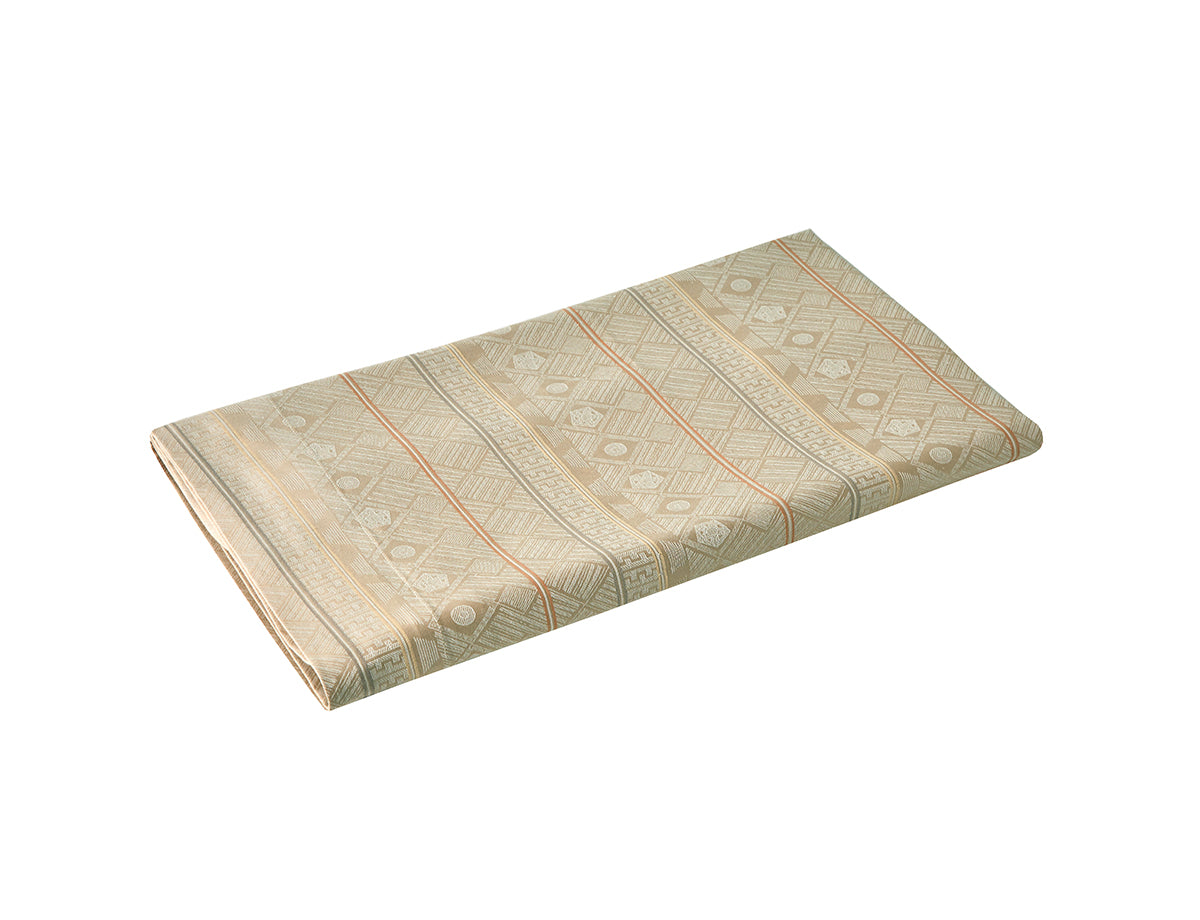 Fabriquée en satin de coton jacquard, elle présente un motif géométrique entrelacé, le tout dans une magnifique teinte beige.
