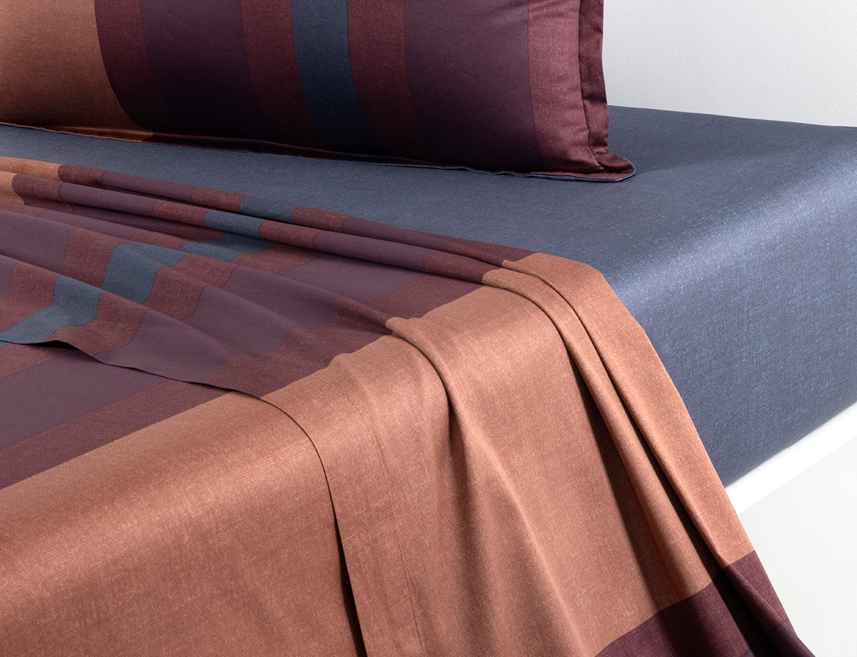 La parure de lit FINN par Boss Home séduit par son motif raffiné aux teintes profondes de bordeaux, de cuivre et de bleu nuit, subtilement agencées pour créer une atmosphère chaleureuse et contemporaine. Imprimée sur une flanelle douce et enveloppante, elle invite au confort et à la détente dès les premiers instants.