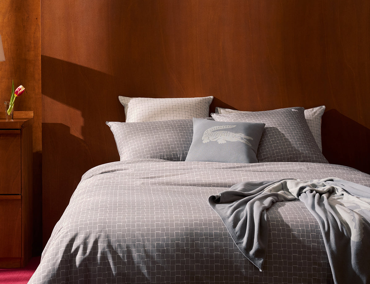 Découvrez le linge de lit Lacoste, alliance parfaite entre design chic, confort haut de gamme et héritage sportif. Réputée pour son célèbre polo au logo crocodile, la marque décline aujourd’hui son univers dans une collection raffinée de parures de lit, taies d’oreiller, draps et serviettes. Fabriqué en coton de qualité, le linge de lit Lacoste apporte douceur et modernité à votre chambre. La marque propose des motifs inspirés du tennis, emblèmes de son ADN, et une palette de couleurs sobres ou dynamiques pour s’harmoniser avec tous les intérieurs.