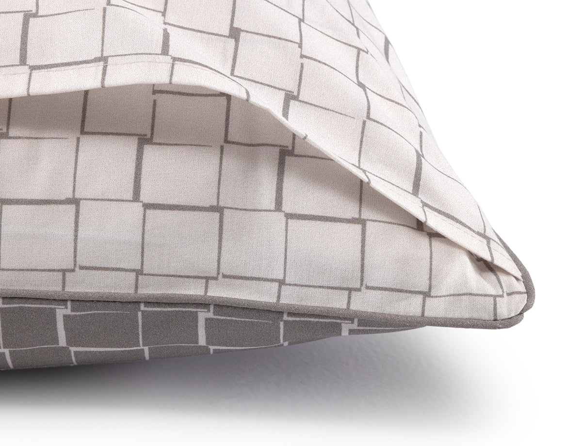 La taie d'oreiller L Block de Lacoste séduit par son graphisme équilibré, entre damier structuré et carreau dynamique. Jouée en positif/négatif, elle révèle une esthétique contemporaine empreinte d’élégance naturelle et intemporelle.