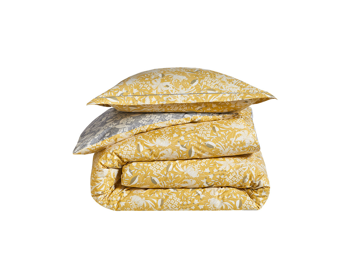 Réalisée en percale de coton de haute qualité, cette parure offre un toucher frais, une grande douceur et une excellente respirabilité, idéale pour des nuits confortables. Le coloris Soleil, éclatant et chaleureux, diffuse une atmosphère conviviale et raffinée dans la chambre.