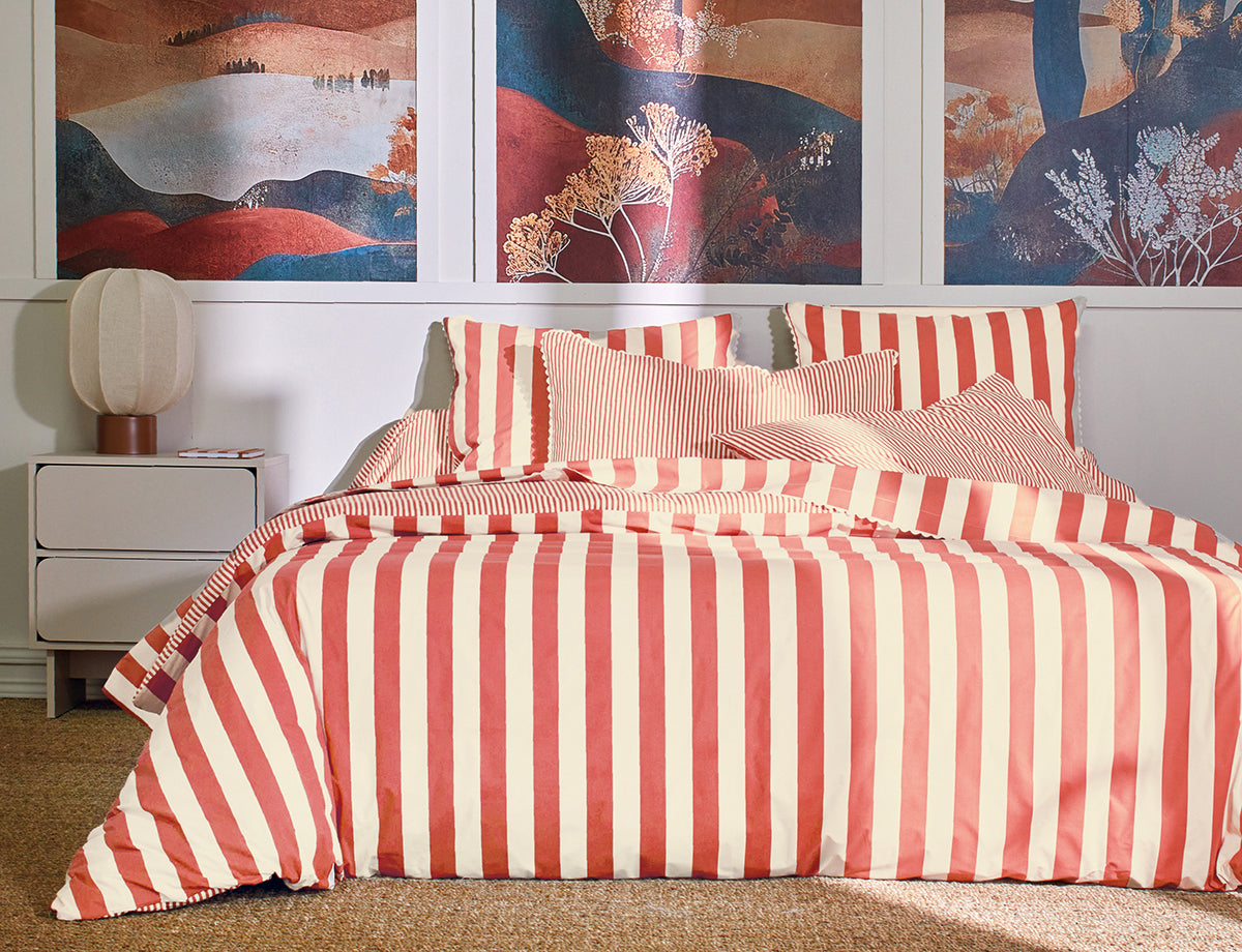 Confectionné en percale imprimée de haute qualité, il combine douceur, confort et durabilité, tandis que le coloris Terra Cota, chaleureux et tendance, sublime l’espace nuit avec élégance.