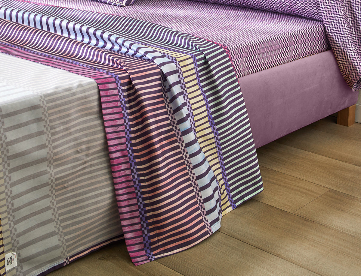 Sublimez votre literie avec le drap plat PORTOFINO Ultraviolet. Son imprimé délicat associé à une teinte intense apporte une dimension élégante et décorative à votre lit.