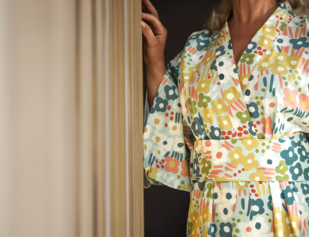 Pour une expérience de bien-être complète, associez le kimono SPRING Azur à son linge de lit coordonné.