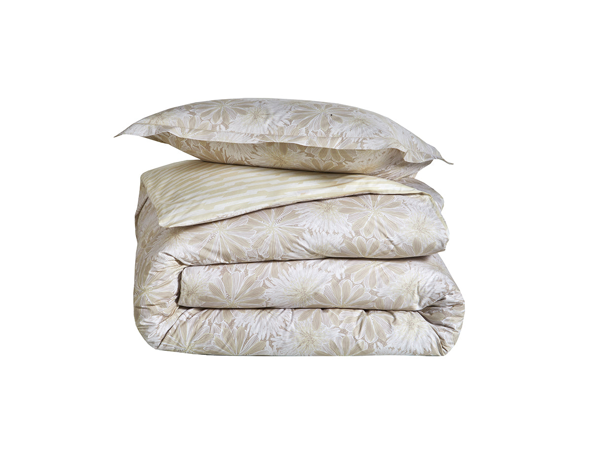 La parure SÉRÉNITÉ Sable par Blanc des Vosges invite à la détente avec ses tonalités douces et naturelles, inspirées des teintes minérales. Son motif discret et raffiné se fond harmonieusement dans une palette sable apaisante, idéale pour créer une chambre à l’ambiance zen et chaleureuse.