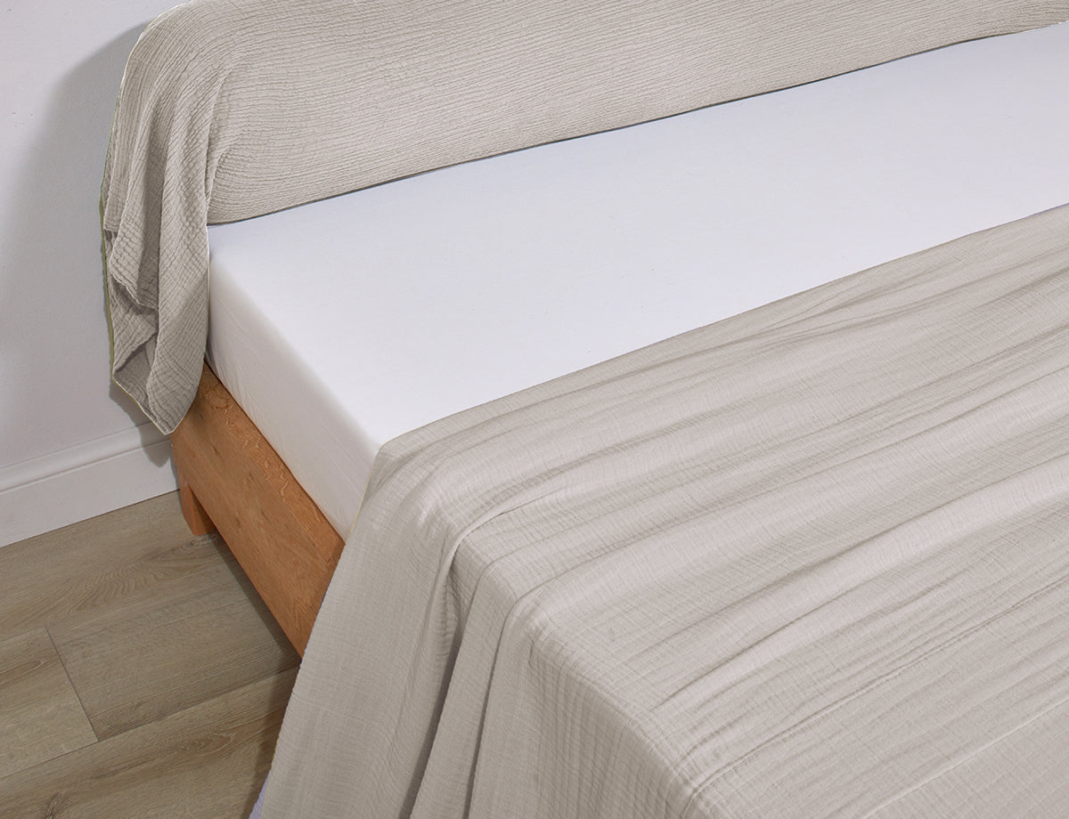 Cette gamme comprend un drap, une taie d'oreiller, une taie de traversin et une housse de couette, tous conçus pour s'harmoniser parfaitement dans votre chambre.