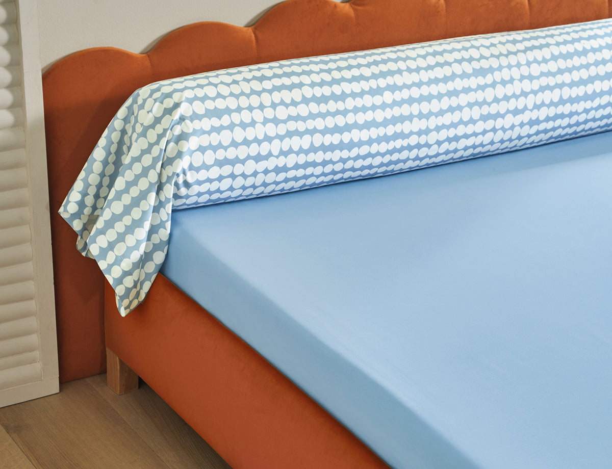 Taie de Traversin Percale de coton - DOTS Bleu Céleste
